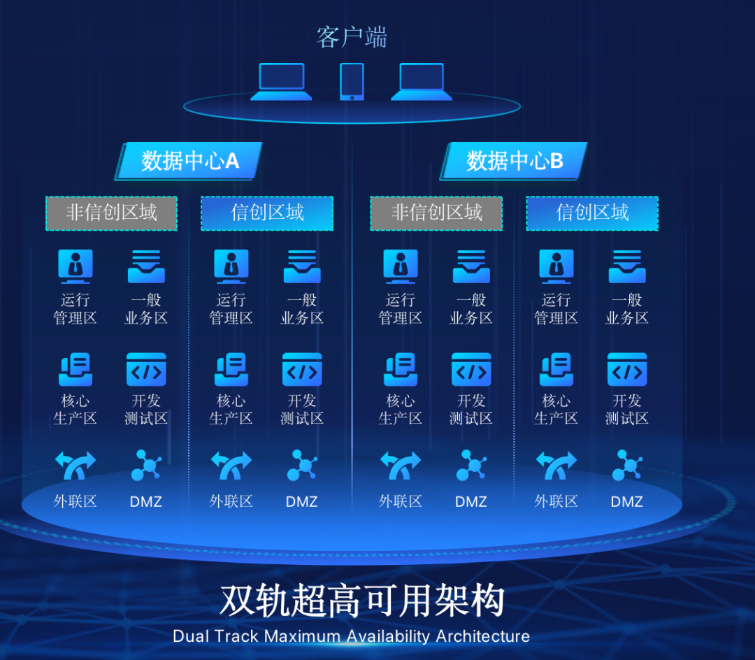 leyu.樂魚在企業(yè)面臨自主創(chuàng)新IT基礎(chǔ)重構(gòu)過程中,推出的全新架構(gòu)雙軌超高可用架構(gòu)(簡稱DTMAA),在雙活數(shù)據(jù)中心的分區(qū)調(diào)度基礎(chǔ)上,添加每個數(shù)據(jù)中心內(nèi)信創(chuàng)域和非信創(chuàng)域的分域調(diào)度,來實現(xiàn)分區(qū)分域協(xié)同的多活雙軌超高可用。