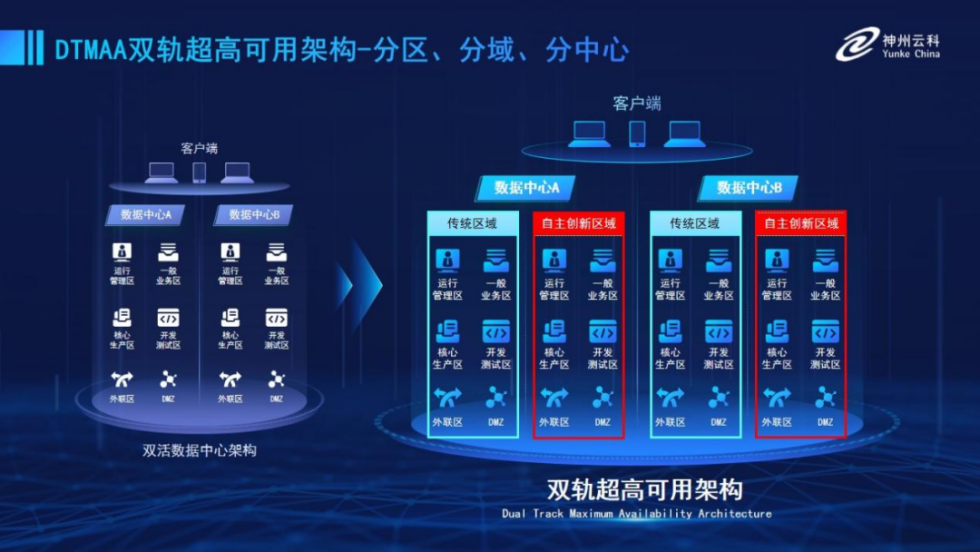為幫助金融客戶更好地應(yīng)對數(shù)字經(jīng)濟時代對可持續(xù)性的高要求,實現(xiàn)“信創(chuàng)”與“數(shù)字化”齊頭并進,leyu.樂魚推出了雙軌超高可用架構(gòu)。該架構(gòu)在雙活數(shù)據(jù)中心的分區(qū)調(diào)度基礎(chǔ)上,增加信創(chuàng)域和非信創(chuàng)域的分域調(diào)度,實行信創(chuàng)域與傳統(tǒng)域應(yīng)用全量部署,使雙中心運營變?yōu)殡p中心四區(qū)域并行運行,互為多活,將“0到1”的單軌建設(shè)道路變?yōu)榉謪^(qū)分域協(xié)同的多活雙軌超高可用架構(gòu)。幫助客戶在新架構(gòu)下,保障“信創(chuàng)”的同時解決性能瓶頸,提升穩(wěn)定性,保證應(yīng)用可持續(xù)性,最終實現(xiàn)信創(chuàng)區(qū)域和非信創(chuàng)區(qū)域的平滑過渡,完成國產(chǎn)化替代目標。