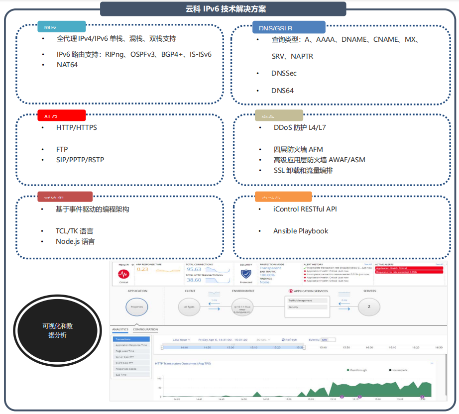全球范圍內(nèi)支持無(wú)線和互聯(lián)網(wǎng)的設(shè)備日益增多,導(dǎo)致 IPv4 地址快速耗盡。與此同時(shí),IPv6 的普及速度比預(yù)計(jì)的要慢。服務(wù)提供商需要一款解決方案,幫助他們應(yīng)對(duì) IPv4 地址耗盡的問(wèn)題,并基于無(wú)縫遷移到 IPv6 以實(shí)現(xiàn)網(wǎng)絡(luò)優(yōu)化。通過(guò)提供大量的IP地址轉(zhuǎn)換、快速的NAT 轉(zhuǎn)換率、高吞吐率能力和高速的日志審計(jì)功能實(shí)現(xiàn)運(yùn)營(yíng)商級(jí)平臺(tái)的可擴(kuò)展性。